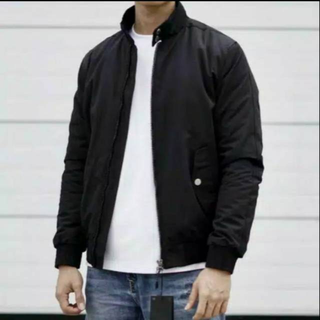 Jaket Pria dan Wanita Model Bomber Polos Warna Hitam Shopee Indonesia