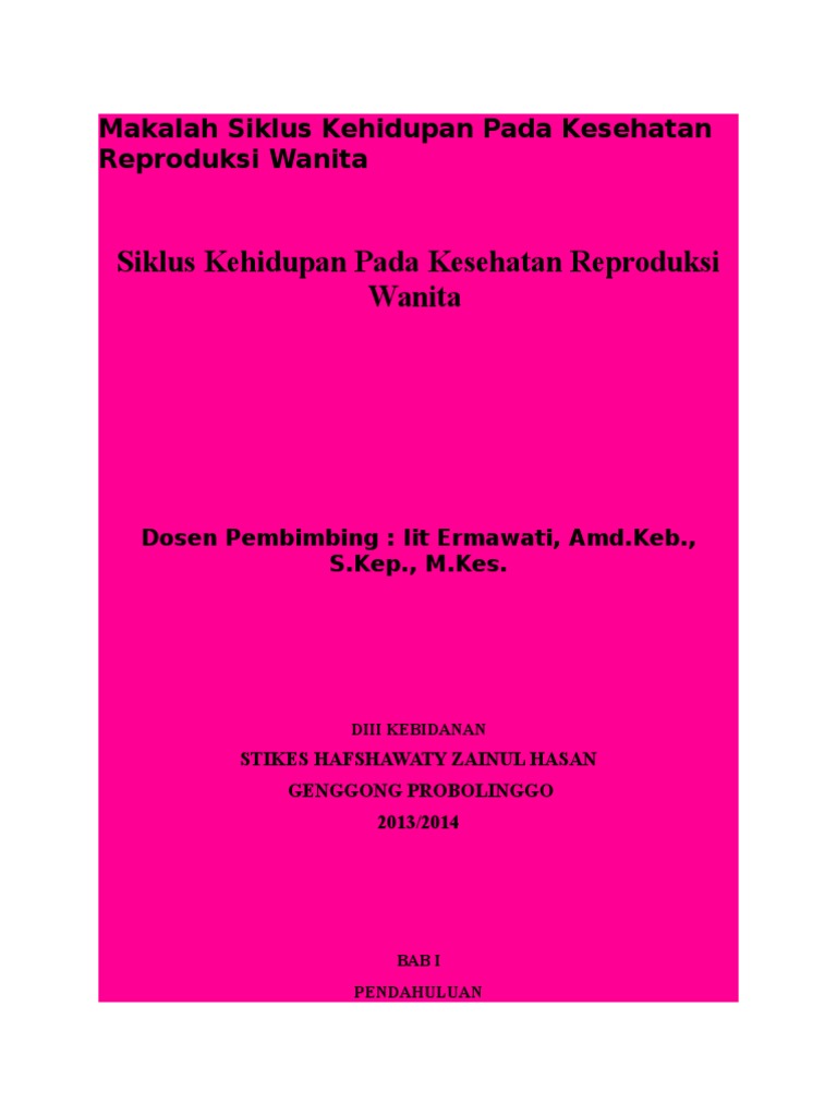Makalah Siklus Kehidupan Pada Kesehatan Reproduksi Wanita