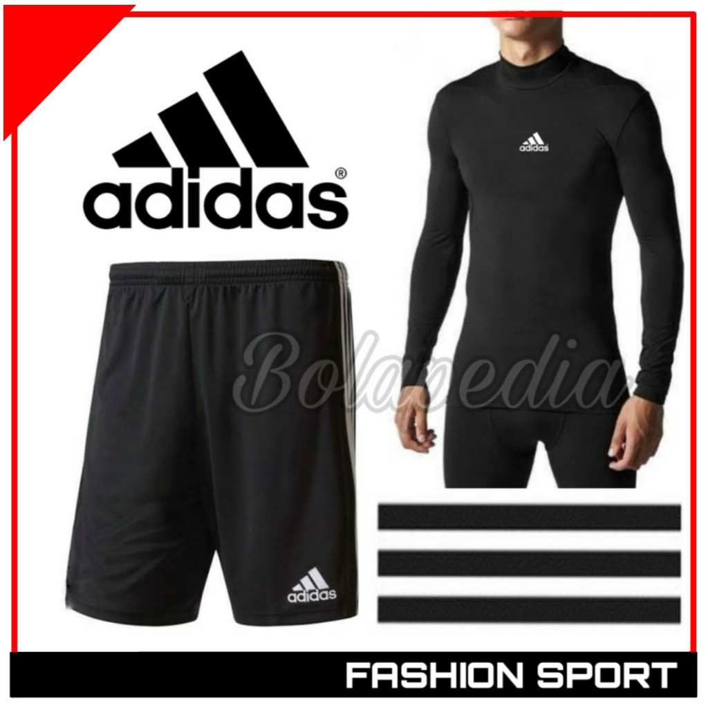 Stelan Olahraga Pria Manset Baselayer Legging Panjang dan Celana Pendek