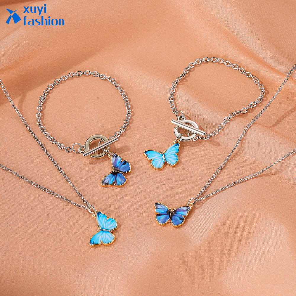 Korea Kupu Kalung Gelang Liontin Wanita Retro Chain Kalung Choker Gadis