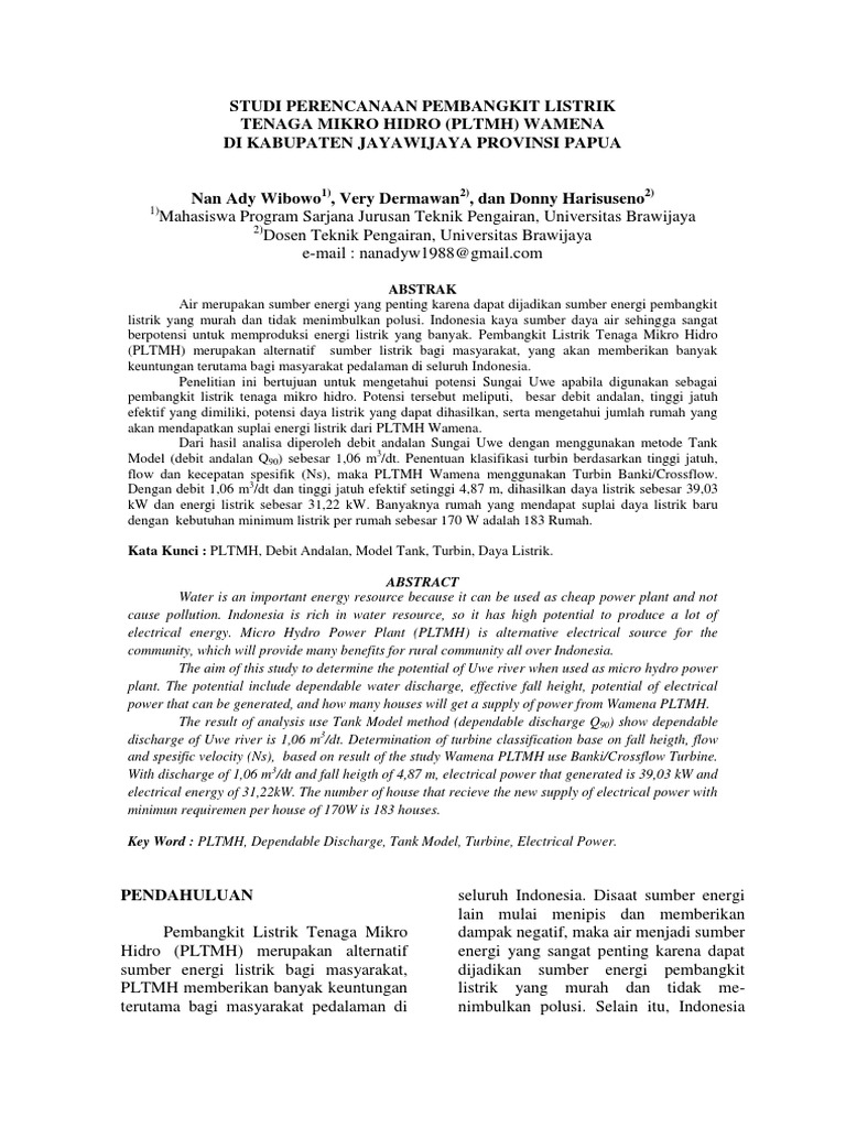 Studi Perencanaan Pembangkit Listrik Tenaga Mikro Hidro PLTMH Wamena Di