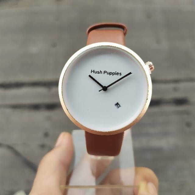 JAM TANGAN WANITA HUSH PUPPIES DIAMETER KECIL TALI KULIT COKLAT