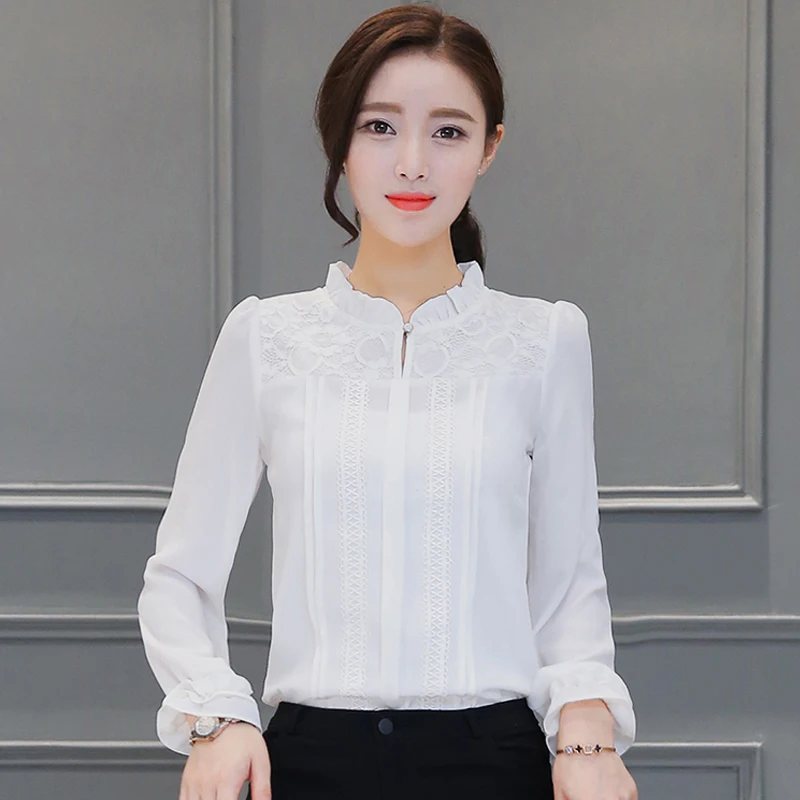 Lengan panjang 2017 Wanita Blus Elegan Renda Embroiderly Blouse Kemeja